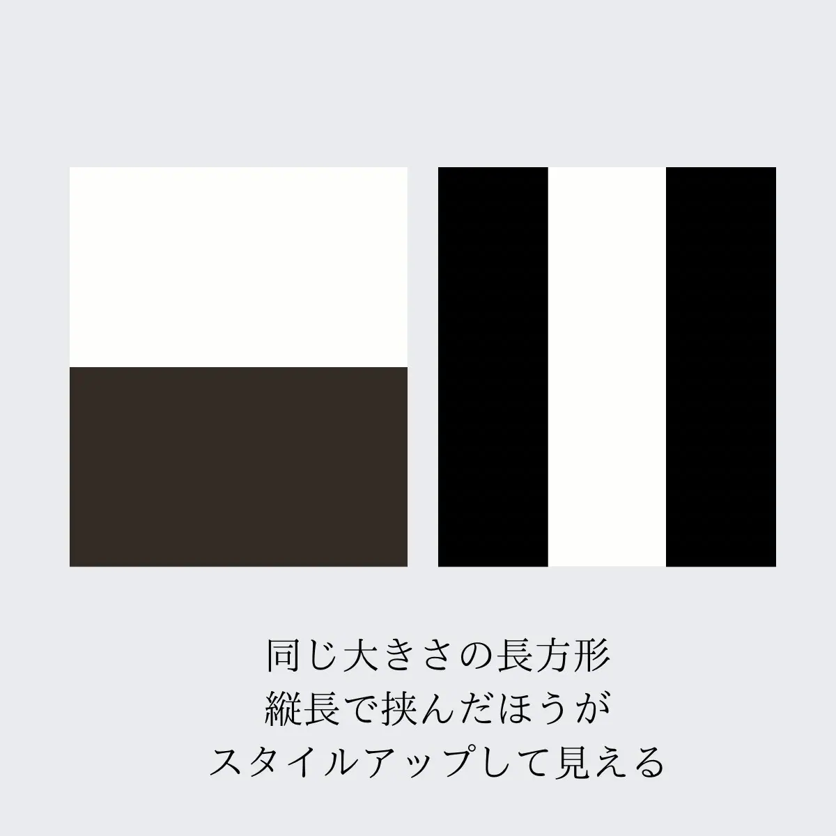 同じ長方形でも、縦長で挟んだ右側のほうがスタイルアップして見えます。